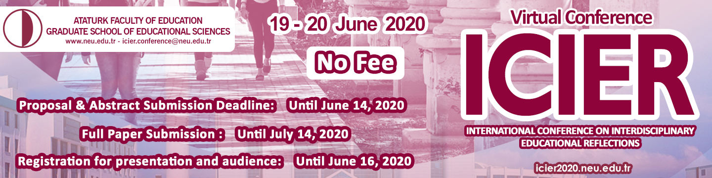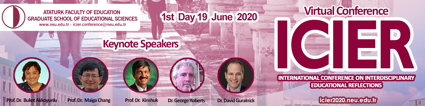 Welcome to ICIER Conference 2020 This year, we are concerned about COVID-19. As your safety is our priority, we think that we must comply with the calls of the world health organization and the decisions of the Northern Cyprus government. Therefore, we decided to make ICIER, which will include international speakers, online. Besides the online opening ceremony, online keynote speeches will be interactively presented in the form of webinars on NEU tv and youtube channel. Oral and poster presentations will be online on the google meet environment. Through Google Meet, 250 people will be able to attend each session. This means a large number of viewers and participants will be able to connect. We hope to see you at a ICIER Virtual Conference 2020 with the theme “Reflection on 21st Century skills, smart learning environments and digitalization in education.” ICIER 2020 Organizing Committee. Additional Information: Selected full-text papers will be published in these Supporting journals after the process of peer review :