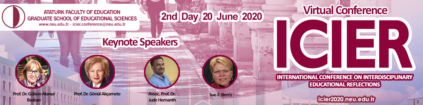 Welcome to ICIER Conference 2020 This year, we are concerned about COVID-19. As your safety is our priority, we think that we must comply with the calls of the world health organization and the decisions of the Northern Cyprus government. Therefore, we decided to make ICIER, which will include international speakers, online. Besides the online opening ceremony, online keynote speeches will be interactively presented in the form of webinars on NEU tv and youtube channel. Oral and poster presentations will be online on the google meet environment. Through Google Meet, 250 people will be able to attend each session. This means a large number of viewers and participants will be able to connect. We hope to see you at a ICIER Virtual Conference 2020 with the theme “Reflection on 21st Century skills, smart learning environments and digitalization in education.” ICIER 2020 Organizing Committee. Additional Information: Selected full-text papers will be published in these Supporting journals after the process of peer review :